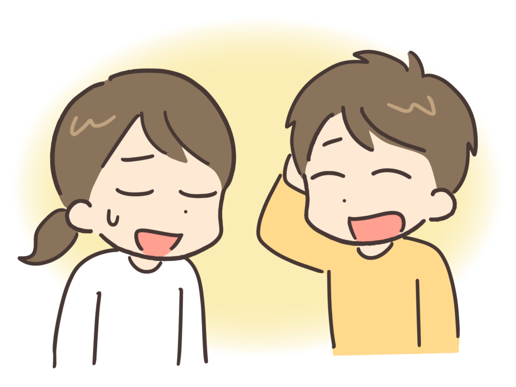 | 8 | 相视而笑 | xiāng shì ér xiào | お互い顔を見合わせて笑う。 |